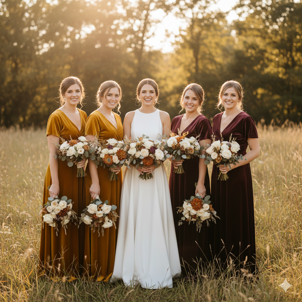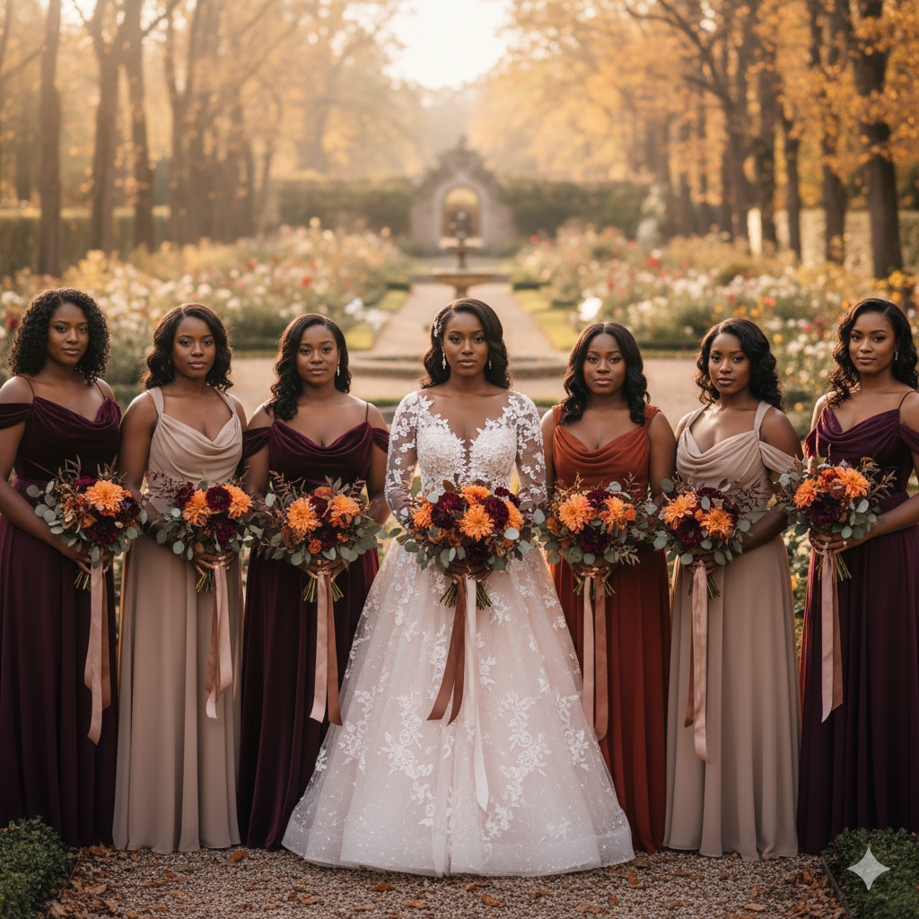 How to Perfectly Match Your Wedding Dress with Bridesmaid Dresses: A Complete Fall & Winter Guide